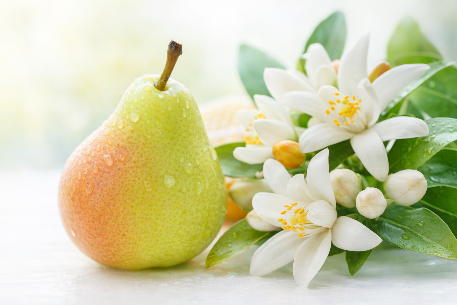 La dolcezza succosa della pera incontra la freschezza del fiore d’arancio, per una sensazione pulita e raffinata che conquista al primo istante.